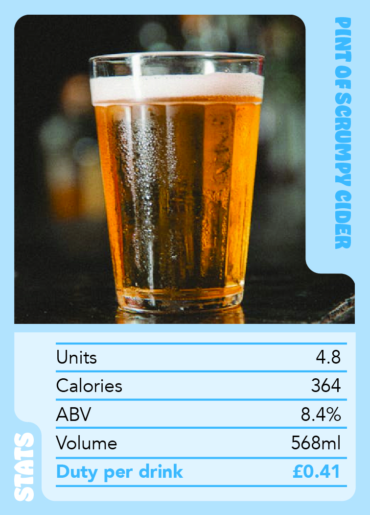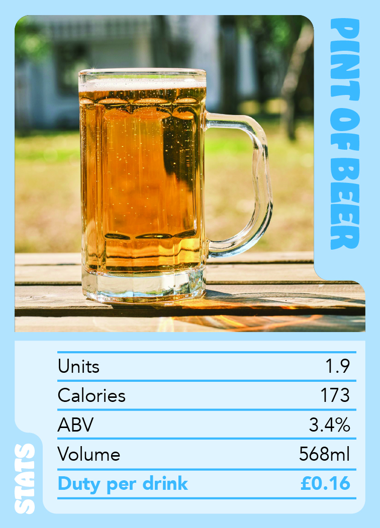 Choose your go-to drink(s) from the deck, and take a look at the unit count versus the amount of duty paid per unit. Compare two different drinks - cider with Scotch Whisky, for example. Very often, spirits come out lower in units, lower in volume and calories, but far higher in alcohol duty.