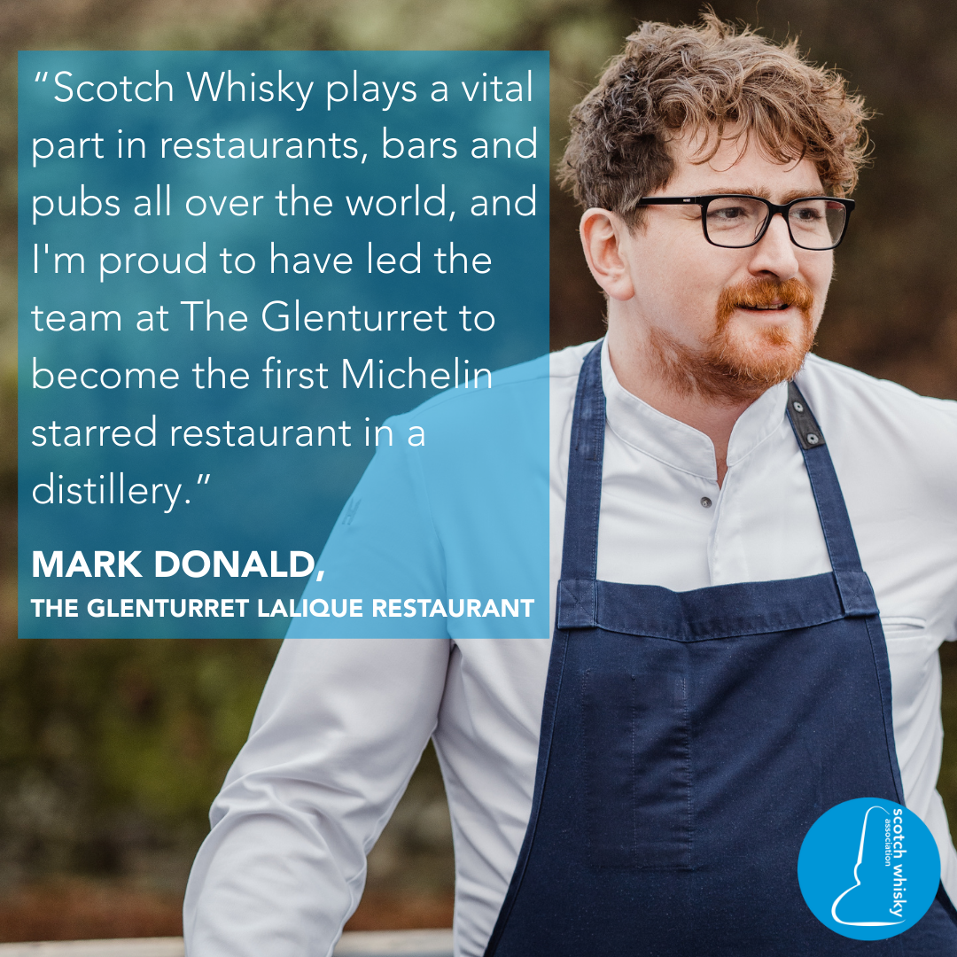 “As Executive Chef at The Glenturret my job is to explore Scotch Whisky in a different way: playing with flavours, aligning distillation processes and techniques, and creating subtle nods throughout our menu has allowed me to introduce our guests, wherever they are in their whisky journey, to the versatility of Scotland’s national drink. Scotch Whisky plays a vital part in restaurants, bars and pubs all over the world, and I'm proud to have led the team at The Glenturret to become the first Michelin starred restaurant in a distillery.”